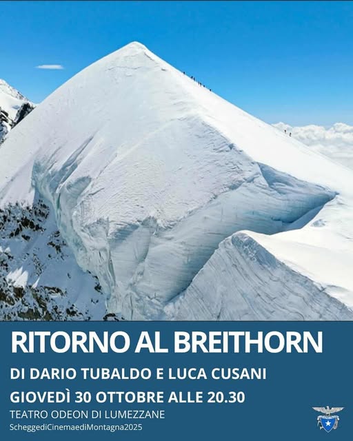 Domani, giovedì 30 ottobre alle ore 20:30, il teatro Odeon di Lumezzane ospiterà la proiezione del film “Ritorno al Breithorn” di Dario Tubaldo e Luca Cusani.
