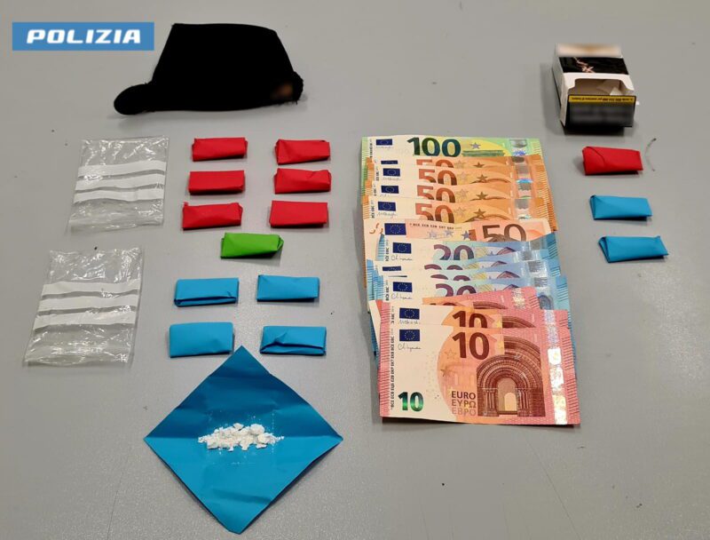 Gli agenti, insospettiti da quanto accaduto, hanno bloccato i due all’interno del veicolo e hanno trovato la donna in possesso di un dose contenente 1,44 grammi di cocaina e, a seguito di perquisizione nei vari alloggiamenti dell’autovettura, sono stati trovate diverse dosi per un totale di 24,05 grammi di cocaina mentre, nel porta oggetti, la somma di 120 euro. Inoltre, nel portafoglio che l’uomo teneva tra le gambe, è stata sequestrata la somma di 490 euro in contanti in banconote di piccolo taglio.