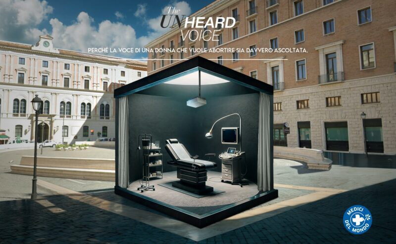 Medici del Mondo, rete internazionale impegnata a garantire l’accesso alla salute, torna ad accendere i riflettori sulla diffusa violenza psicologica cui sono sottoposte molte delle oltre 65.000 donne in Italia, di cui oltre 11.000 solo in Lombardia, che ogni anno vogliono interrompere la gravidanza. Dopo le tappe di Roma e Parigi lo scorso autunno, e quella di Torino a marzo, il 21 maggio arriva per la prima volta a Milano la speciale installazione di Medici del Mondo: una teca trasparente che riproduce un piccolo ambulatorio ginecologico, allestita in Piazza Duca d’Aosta, dove dalle 10:30 alle 19:00 sarà possibile ascoltare le frasi realmente pronunciate dal personale sanitario, come “Doveva pensarci prima!”, “Ti sei divertita, ora paghi”, “Deve sentire il battito del feto, è fondamentale!”, “Siamo donne, dobbiamo soffrire”. Si tratta di testimonianze reali di donne che, a fronte del proprio diritto di richiedere un’interruzione volontaria di gravidanza, hanno subito abusi e violenze inaccettabili, da Nord a Sud della Penisola. L’installazione fa parte della campagna “The Unheard Voice” che Medici del Mondo ha lanciato lo scorso settembre per denunciare le barriere che ostacolano l’accesso all’interruzione volontaria di gravidanza (IVG) in Italia e far ascoltare cosa realmente accade nelle strutture sanitarie, in cui la voce delle donne viene spenta per far sentire loro il “battito fetale” o le parole violente di chi vuole negare il diritto all’aborto.
