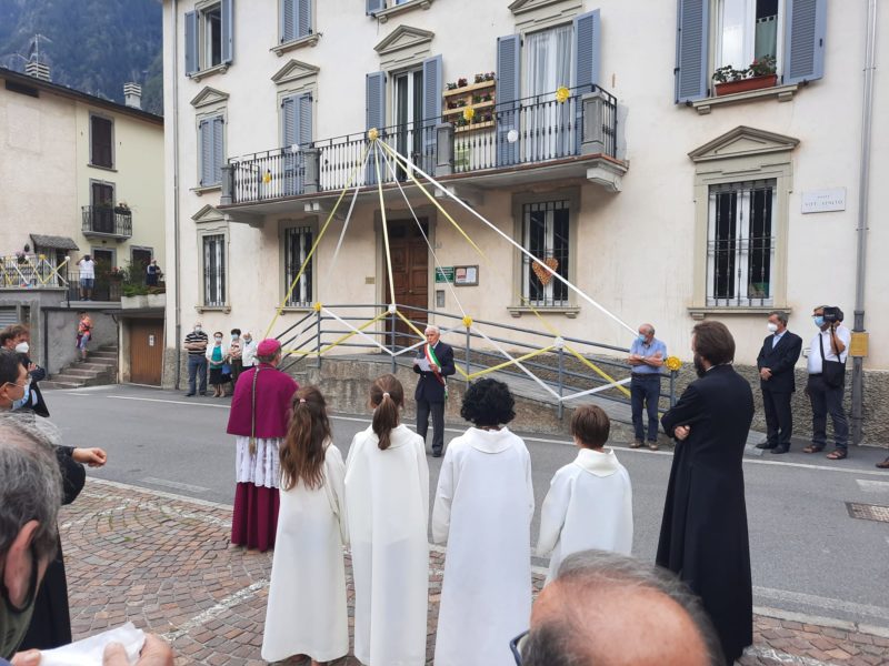 Il primo cittadino ha ricordato “l’appartenenza di Carona alla Chiesa di Lombardia, oltre che alla Diocesi di Bergamo, qui rappresentata lo scorso 12 giugno dal nostro vescovo mons. Francesco Beschi. Non posso non ricordare anche il Suo impegnativo incarico quale Arcivescovo di Milano, nel ruolo che fu di San Carlo Borromeo, grande riformatore della Chiesa anche nelle nostre Valli, che visitò Carona il 4 ottobre 1575”. “Siamo tutti Figli di Dio – ha aggiunto Pedretti – nati sotto lo stesso cielo che qui forse appare più terso, spesso ammirato da tanti villeggianti ed escursionisti che hanno eletto Carona quale patria adottiva, caratterizzata da pendii verdeggianti e rifugi, dalle acque del lago e dalla cordialità sincera della nostra gente. Vedo in tutto questo ad un ideale dialogo fra la montagna e la città, con la vicendevole necessità di donarsi sostegno nei servizi (per noi sempre più difficoltosi e insostenibili) e nel meritato refrigerio, in estate o sugli sci”.