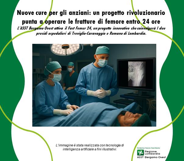 Un nuovo progetto, denominato Fast Femur 24 (FF24), è partito nelle scorse settimane alla ASST Bergamo Ovest per migliorare l’assistenza ai pazienti anziani che subiscono una frattura del femore.