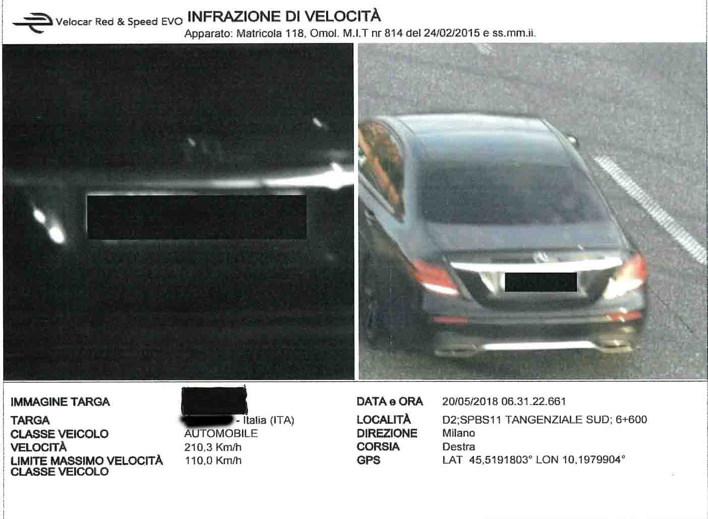 Con un post sulla propria pagina Facebook la Polizia Provinciale di Brescia mostra la foto di un autovelox che immortala una Mercedes sfrecciare a 210,3Km/h lungo la tangenziale.