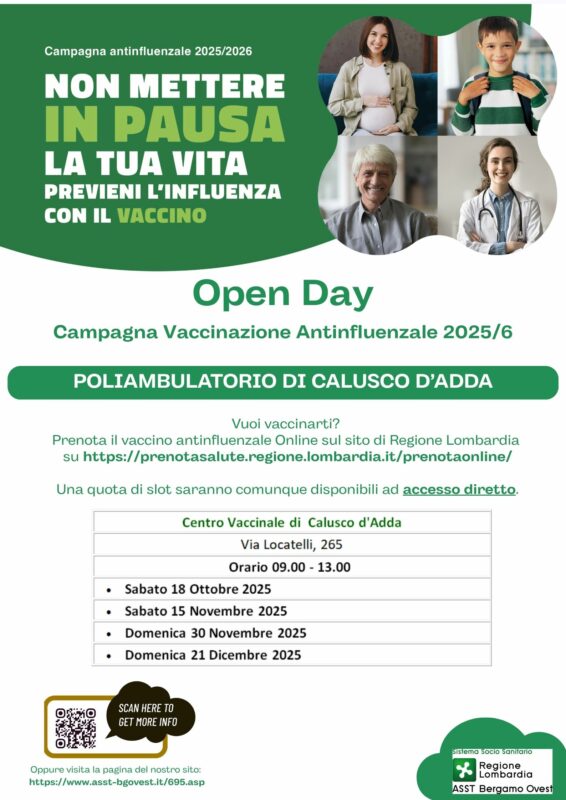 L’Azienda Socio Sanitaria Territoriale di Bergamo Ovest ha organizzato il primo Open Day per la vaccinazione antinfluenzale, un’occasione per proteggere sé stessi e la propria comunità in vista della stagione influenzale.