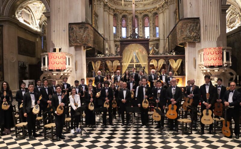 L’Orchestra Estudiantina è rinata nel 2008, nel solco dell’esperienza della gloriosa formazione attiva sino agli anni ’50, con l’obiettivo di valorizzare, grazie a mandolini e chitarre, repertori storici e contemporanei legati alla tradizione delle orchestre a plettro. La formazione vanta un curriculum di primo piano, con l’incisione, di un doppio CD del Circolo Mandolinistico Italiano nel 2010 e “Donizetti a pizzico”, appena pubblicato. Da ricordare anche la rassegna “I Lunedì dell’Estudiantina” nelle sale da concerto di Bergamo e provincia ed il “Concorso Europeo Estudiantina Bergamasca” per giovani musicisti. Nel dicembre 2022 all’orchestra e al suo direttore e rifondatore Pietro Ragni è andato il “Premio Segovia Day” a ricordo dello storico concerto a Bergamo nel 1926. L’esibizione del grande chitarrista spagnolo fu motivo di una raccolta di beneficenza e con analogo spirito si svolge quest’anno il concerto dell’Estudiantina a Gandino. Nel corso della serata (ingresso libero) saranno infatti raccolte offerte a favore dell’Associazione “Aiutiamo i Fratelli Poveri e Lebbrosi” di Gandino, guidata dai coniugi Onorino e Liliana Bertocchi. Hanno collaborato con Madre Teresa di Calcutta e raggiunto gli angoli più poveri e dimenticati del mondo. “Sosterremo – spiega Enzo Conti, presidente dell’Atalanta Club Valgandino – gli urgenti progetti ad Haiti, dove il laico Maurizio Barcaro, legato ad Onorino e Liliana, opera fra povertà e feroce criminali con due scuole e sostegni alimentari, dando speranza ad oltre tremila ragazzi. Un luogo su cui si accendono troppo poco i riflettori del mondo. La raccolta fondi è a ricordo dell’amico Piero Gelpi, fondatore del Club morto a settembre”. Il programma della serata prevede musiche di Ritter, Amadei, Bach, Sant’Alfonso Maria de’ Liguori, Szordikowski, Salvetti, Giudici e Ortolani. Da segnalare la partecipazione di Redi Lamçja (mandoloncello), Francesco Panico (tromba), Manuela Zani (violino), Davide Bortolai (baghèt), Andrea Serafini (percussioni), Francisca Bonazzi e Davide Faccini (flauti).