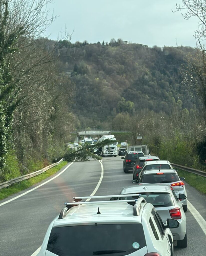 L’episodio ha causato rallentamenti e code, con diversi veicoli costretti a procedere a passo d’uomo. Dalle immagini si nota chiaramente il tronco e i rami che occupano la corsia, creando una situazione di potenziale pericolo per gli automobilisti in transito.