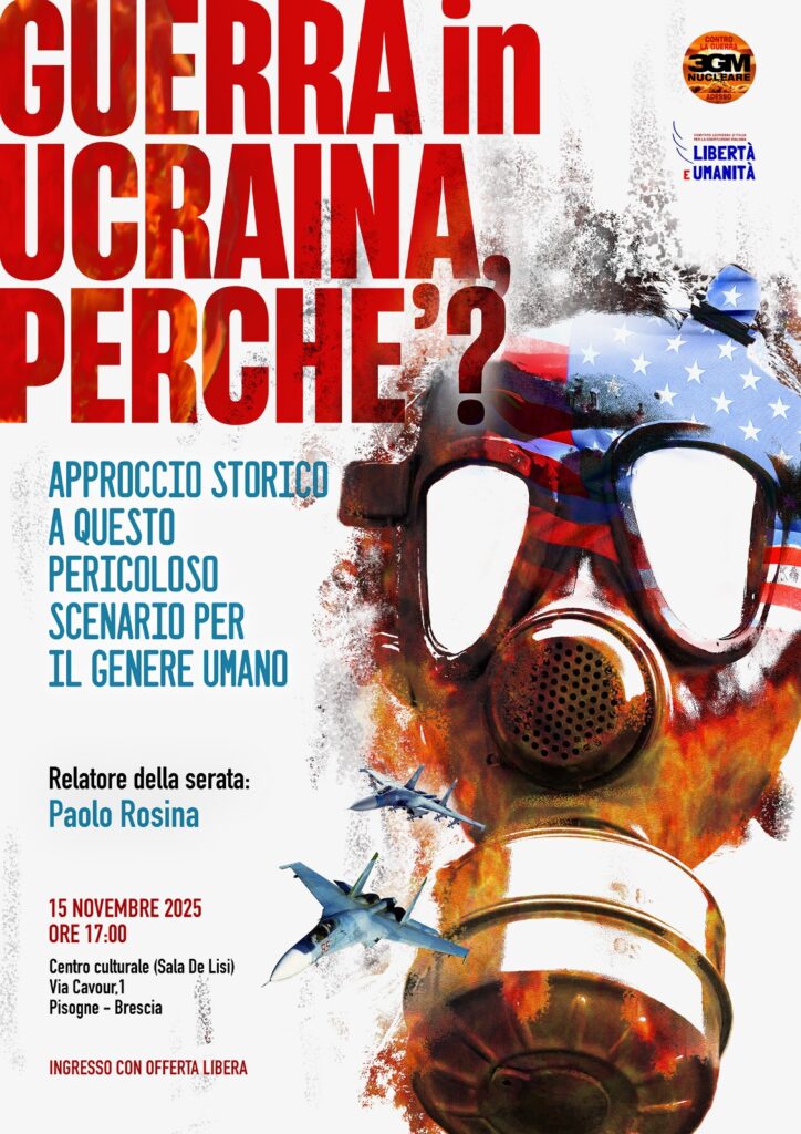 Sabato 15 novembre, alle ore 17 presso la Sala Comunale “De Lisi” di Pisogne (via Cavour 1), si terrà l’incontro dal titolo “Guerra in Ucraina. Perché? Approccio storico a questo pericoloso evento per il genere umano”. Relatore sarà Paolo Rosina, che offrirà un’analisi documentata e approfondita delle vere ragioni storiche, politiche e militari che hanno portato allo scoppio del conflitto tra Russia e Ucraina.