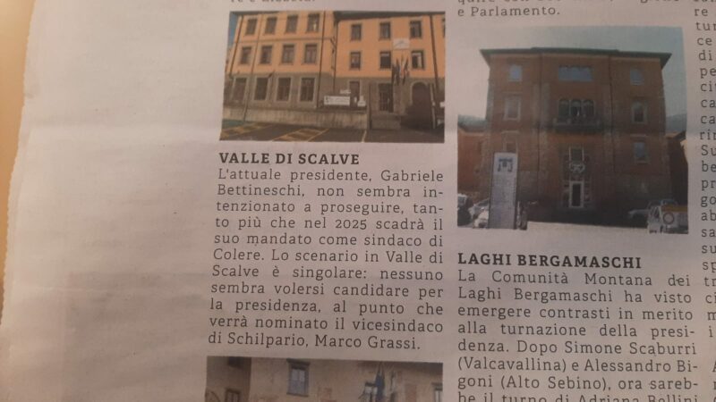 “Negli ultimi anni la scelta del presidente della Comunità Montana di Scalve è stata basata fondamentalmente su una sorta di rotazione fra i quattro comuni che la costituiscono. Visti gli accordi precedentemente presi questa volta toccherà a Schilpario che ha come suo delegato presso la Comunità Montana il proprio vice-sindaco Marco Grassi ed entro la prossima settimana il tutto dovrebbe essere ratificato in assemblea. Quindi non è esatta l’affermazione che in terra scalvina nessuno voglia candidarsi, anzi. Inoltre è anche opportuno precisare che molto probabilmente a Colere la tornata elettorale, stando alle ultime indiscrezioni, ci sarà nel 2026 e non nel 2025.” Gabriele Bettineschi