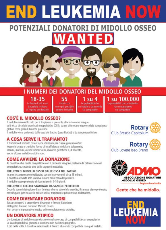 Mercoledì 17 aprile c.a. alle ore 11,00, presso la Sala Conferenze del Presidio Ospedaliero di Esine (via Manzoni 142), la Direzione Strategica dell’ASST della Valcamonica, unitamente ai membri del Rotary Club Lovere-Iseo-Breno, presenteranno la campagna “END LEUKEMIA NOW”.