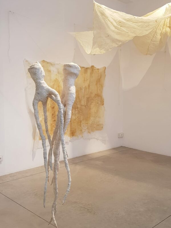Sotto la sua grande installazione “Sopra tutto il fiore”, punto aggregativo della mostra, si è intessuto un dialogo con naturalisti, attivisti ambientali, danzatori sensibili alla natura, ragazzi interessati all’ecologia, alle cui voci anche il libro “Respiro Dentro” da spazio.