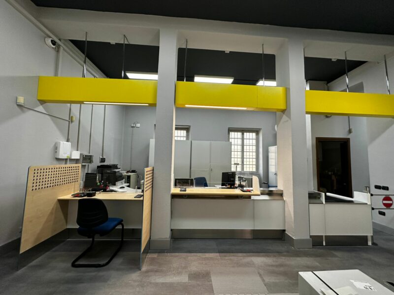 Tra gli interventi effettuati negli uffici lavori di tinteggiatura, nuovi arredi, nuova illuminazione a led a basso impatto energetico un rinnovamento totale degli ambienti all’interno della sala al pubblico, l’introduzione di nuove postazioni ribassate per favorire una migliore relazione con la clientela.