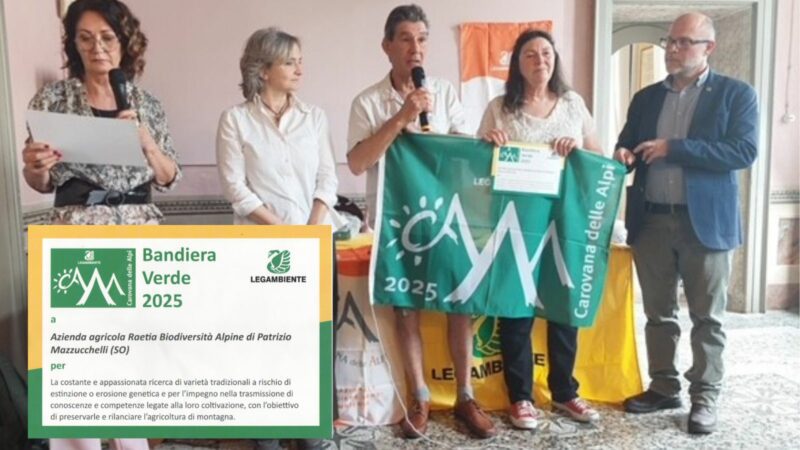 Il polo UNIMONT dell’Università degli Studi di Milano ha il piacere di comunicare l’assegnazione della Bandiera Verde 2025 da parte di Legambiente Carovana delle Alpi all’azienda agricola Raetia Biodiversità Alpine di Teglio (SO).