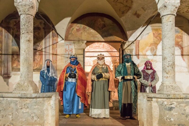 Al termine della messa, attorno alle 18.30, i Re Magi compariranno sul sagrato e dopo un breve incipit in stretto dialetto casnighese apriranno il corteo verso l’abitato accompagnati da pastori, suonatori di baghèt (antica cornamusa bergamasca), animali, coro popolare e fedeli. La discesa in paese farà tappa al castello di Re Erode, ricreato nella ex chiesa di S.Spirito, e successivamente nel cuore del borgo antico, con la rappresentazione della Natività all’interno della chiesa arcipresbiterale di Santo Spirito.