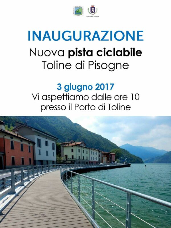 Sabato 3 giugno l’Amministrazione comunale di Pisogne e la Comunità Montana del Sebino, coordinatrice dei lavori, inaugurano la nuova ciclabile di Toline di Pisogne, a lavori appena terminati.