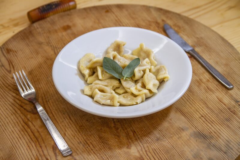 per il ripieno che non è formato né da carni, né da salumi. Composto da formaggio e pane grattugiato, esso prende