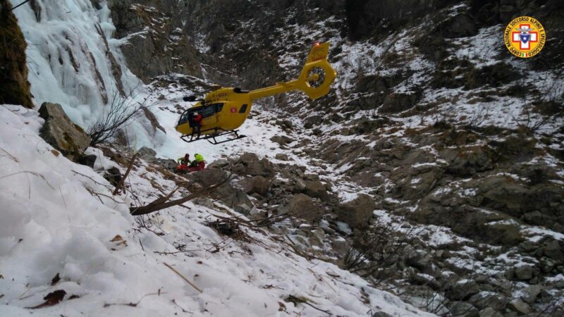 Scivola dalla cascata di ghiaccio, interviene il CNSAS