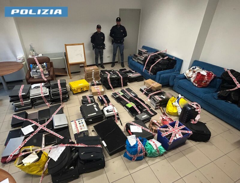 I poliziotti di via Comasina, nel ripostiglio e nel locale pattumiera dello stabile, hanno rinvenuto e sequestrato 413 PC portatili, 246 smartphone, 148 tablet, 72 macchine fotografiche, diverse cuffie wireless, 35 orologi, 19 paia di occhiali oltre a svariato materiale di elettronico come console, modem, proiettori, microfoni, hard disk e una bobina di rame.