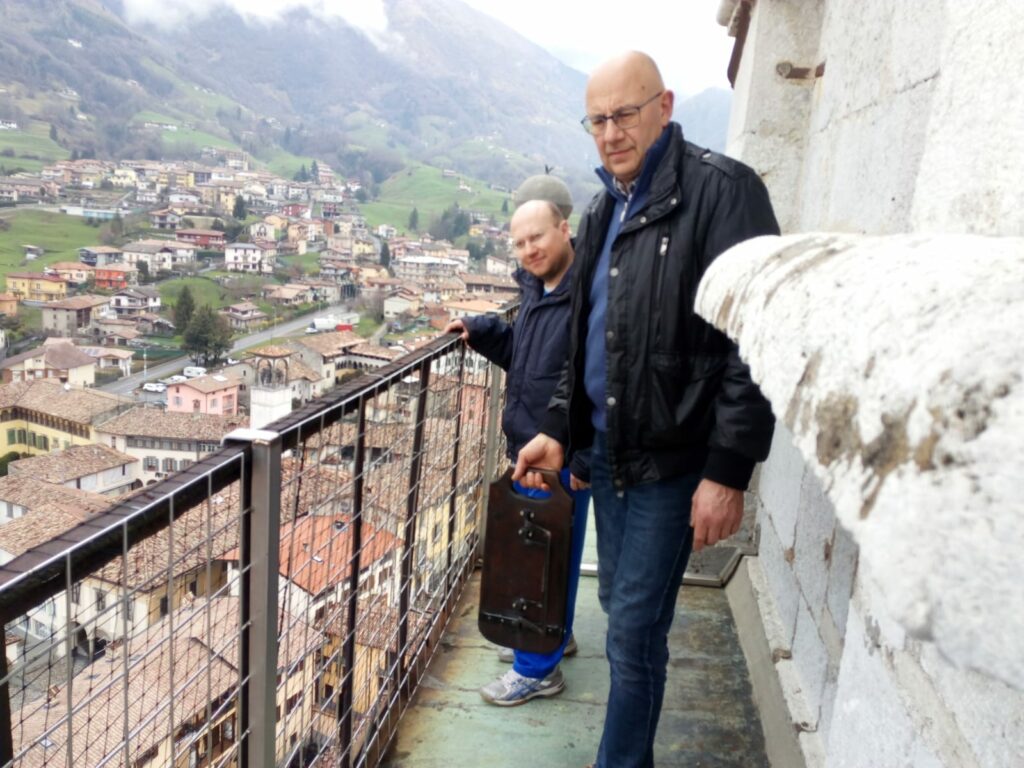 I riti della Settimana Santa rappresentano uno dei momenti più significativi per i cristiani in tutto il mondo e, in Val Gandino, assumono una forma particolare in cui si intrecciano liturgia, tradizioni secolari e partecipazione popolare, creando eventi che da generazioni rafforzano il senso di comunità. Tra le usanze più antiche e sentite spicca quella del Talacimanno di Gandino. Questa pratica (seguita anche a Cirano, Barzizza e Cazzano S.Andrea) prende avvio subito dopo la messa in Coena Domini del Giovedì Santo, quando le campane della Basilica cessano di suonare fino alla Veglia del Sabato Santo. A sostituirle intervengono alcuni volontari che, per due giorni, richiamano i fedeli dalla cima del campanile utilizzando la tola, una tavola di legno dotata di doppio battente, accompagnata dalle urla di colui che viene chiamato Talacimanno. La tola viene agitata in rotazione con vigore, fermandosi a ogni lato del campanile, mentre la voce proclama Ave Maria, Pater, Funziù e Via Crucis, annunciando i diversi momenti della giornata e le celebrazioni.