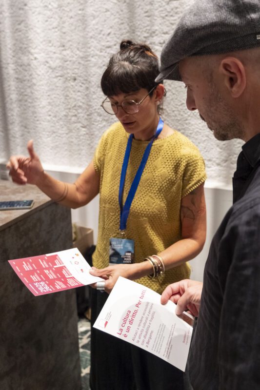 Spazi aperti per una cultura accessibile è un’iniziativa di rete che punta a rendere la cultura bergamasca davvero accessibile a tutte e tutti, con particolare attenzione alle persone in condizione di disabilità e fragilità. È coordinato da Fondazione della Comunità Bergamasca nell’ambito del bando Crowd4Culture di Fondazione Cariplo e coinvolge otto realtà culturali bergamasche: 23/C ART Cooperativa Sociale; ABC Allegra Brigata Cinematica; Associazione Bergamo Film Meeting; Associazione Culturale Immaginare Orlando APS; Cooperativa Sociale Patronato San Vincenzo; HG80 Impresa Sociale; Laboratorio 80 Associazione Culturale; TTB – Teatro tascabile di Bergamo.