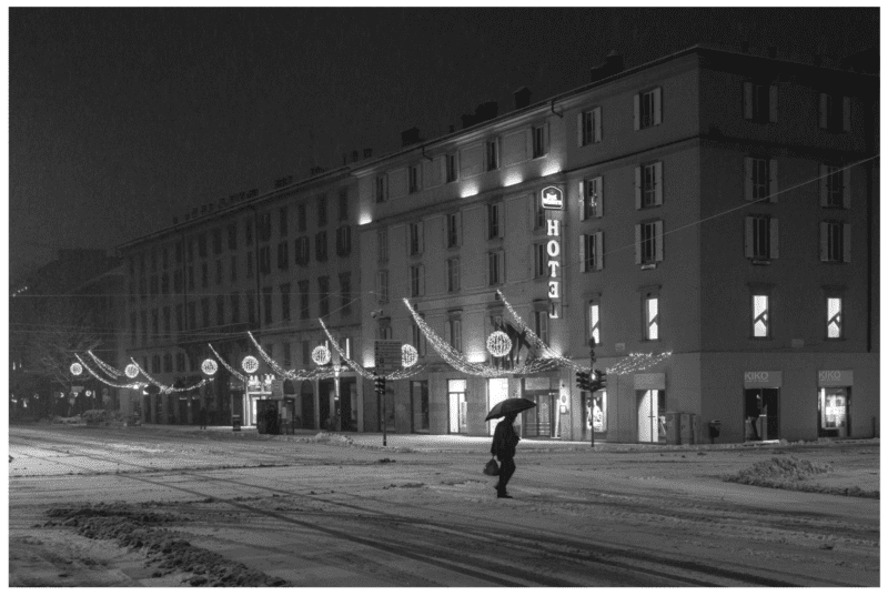 “Col tempo ci si abitua a quello che ci circonda, si perde interesse e si dà molto per scontato. La cosa più difficile, col tempo, è ritrovare uno sguardo curioso, guardare tutto con occhio diverso, quasi estraneo. Così ho camminato a lungo senza meta, girovagando a ogni ora, osservando. Il filo conduttore sarebbe stato lo scorrere delle ore, il tempo. Quello che per definizione è qualcosa di oggettivo, per Kant è forma a priori, insieme allo spazio, della sensibilità. Se gli esseri umani non fossero capaci di avvertire lo scorrere del tempo non sarebbero neanche capaci di percepire il mondo sensibile e i suoi oggetti che sono collocati nello spazio. Lo spazio viene quindi definito come “senso esterno”, il tempo è considerato invece un “senso interno”: tutto ciò che esiste nel mondo fisico viene percepito e ordinato attraverso le strutture a priori del soggetto e ciò che viene collocato nello spazio viene poi ordinato temporalmente. Bergson, successivamente, ha osservato che il tempo della fisica non coincide con quello della coscienza. Il tempo come unità di misura dei fenomeni fisici si risolve in una spazializzazione – come, ad esempio, le lancette dell’orologio – in cui ogni istante è oggettivamente rappresentato e qualitativamente identico a tutti gli altri; il tempo originario, invece, si trova nella nostra coscienza che lo conosce mediante intuizione; esso è soggettivo, e ogni istante risulta qualitativamente diverso da tutti gli altri”, spiega il fotografo Andrea Crupi. “Anche per Einstein lo spazio-tempo è relativo al sistema di riferimento. Sono concetti intimamente legati, ma soggettivi, diversi per ognuno di noi. Quindi qualunque modo “oggettivo” avessi cercato per raccontare la città nel suo vivere nel tempo e nello spazio, sarebbe stato comunque frutto del mio essere, mentre gli altri lo avrebbero interpretato secondo il proprio.
