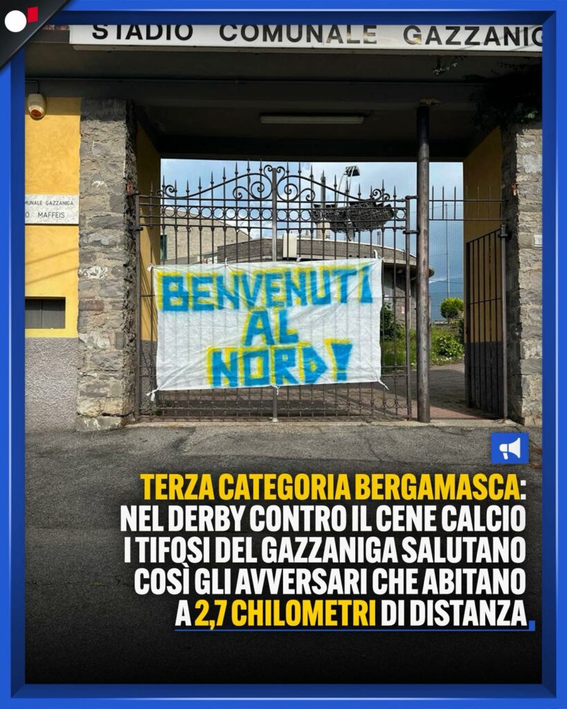All’ingresso dello stadio comunale di Gazzaniga, i tifosi di casa avevano accolto gli “avversari” con uno striscione diventato subito virale: