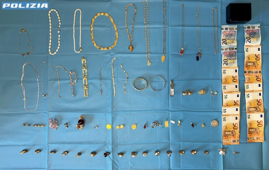 Durante la perquisizione, gli agenti hanno rinvenuto oltre 600 euro in contanti e una grande quantità di gioielli per un peso complessivo superiore ai 600 grammi.