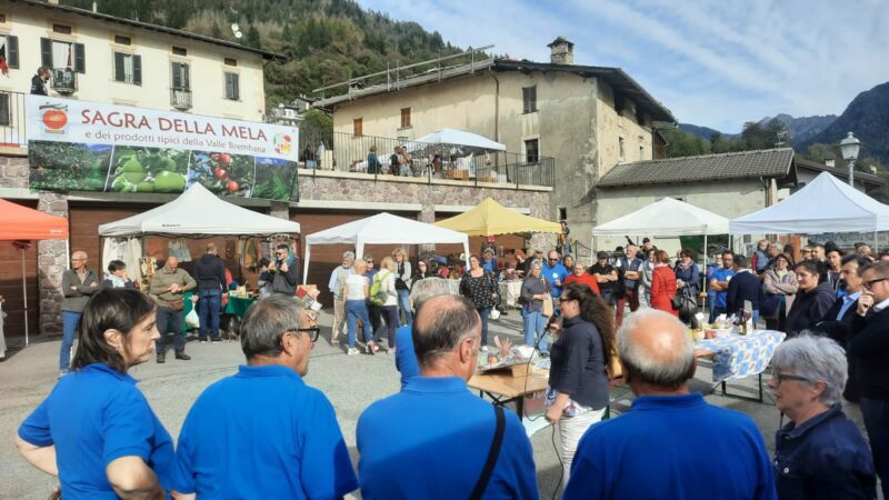 Due giornate all’insegna delle tipicità più autentiche, in un contesto ideale per esaltare, anche grazie al meteo, l’essenza ambientale e il calore umano di un’intera Valle. Si è chiusa con un totale successo “di critica e di pubblico” la due giorni della Festa dela Mela organizzata sabato 14 e domenica 15 ottobre a Moio de’ Calvi da Cooperativa Terre d’Oltre la Goggia e Associazione Frutticolori Agricoltori Valle Brembana (AFAVB). Centinaia, forse migliaia i valligiani e, soprattutto, i turisti accorsi per gustare le produzioni tipiche, che oltre alle buonissime mele (Golden, Topaz, Renette, Delicious, Crimson solo per citare alcune varietà, in molti casi andate esaurite) hanno proposto formaggi d’eccellenza, miele, tisane confetture, erbe selvatiche, zafferano e artigianato. A far da comune denominatore la qualità innegabile dei prodotti e la cordialità di produttori e volontari, pronti a dialogore ed offrire della Valle l’aspetto più buono e più bello. Sabato pomeriggio e domenica mattina sono stati centinaia coloro che hanno esplorato il campo scuola “Arcobaleno delle Mele”, inaugurato a Moio nel 2012. Qui il tecnico Adriano Gadaldi ha imbastito un’utile chiacchierata con numerosi coltivatori e neofiti, pronti ad appassionarsi ad una attività che grazie ad Afavb ha aperto in Val Brembana importanti occasioni di crescita. Nel pomeriggio il momento ufficiale finale ha visto i saluti e i ringraziamenti di Pinuccio Gianati (presidente Afavb) e Annalisa Agape (Presidente Cooperativa di comunità Terre d’Oltre la Goggia) e quelli istituzionali di Alessandro Balestra, sindaco di Moio, Laura Arizzi, assessora della Comunità Montana Valle Brembana, e Jonathan Lobati, consigliere in Regione Lombardia. Molto applaudite le premiazioni dei diversi concorsi. In ambito Afavb i premi per le mele più grosse sono andati a Eugenio Belotti con frutteto a Monte di Zogno (Golden gr.490), Giuseppe Pisoni di Camerata Cornello (Topaz gr.360) e Walter Carminati di Sedrina (Renetta del Canada gr.620). Fuori concorso la renetta da 840 gr. presentata (con ovazione del pubblico) dal presidente Gianati. Il premio qualità (assegnato dalla giuria tecnica formata dagli allievi dell’Abf di San Giovanni Bianco) è andato per le Golden al Campo Scuola di Moio e per le Topaz al frutteto di Antonio Begnis a Olmo al Brembo. Il concorso per le migliori torte in famiglia ha visto una sfida in famiglia, vinta da Giuseppe Angeloni di Valnegra davanti alla moglie Barbara Giupponi. Al terzo posto Emanuela Tassis di Dalmine. Domenica 22 ottobre dalle 10 alle 18.30 sono già in programma i supplementari nella vicina Valnegra, con castagnata e prodotti tipici (pagina Facebook Vallegra aps). L’appetito, è il caso di dirlo, vien mangiando.