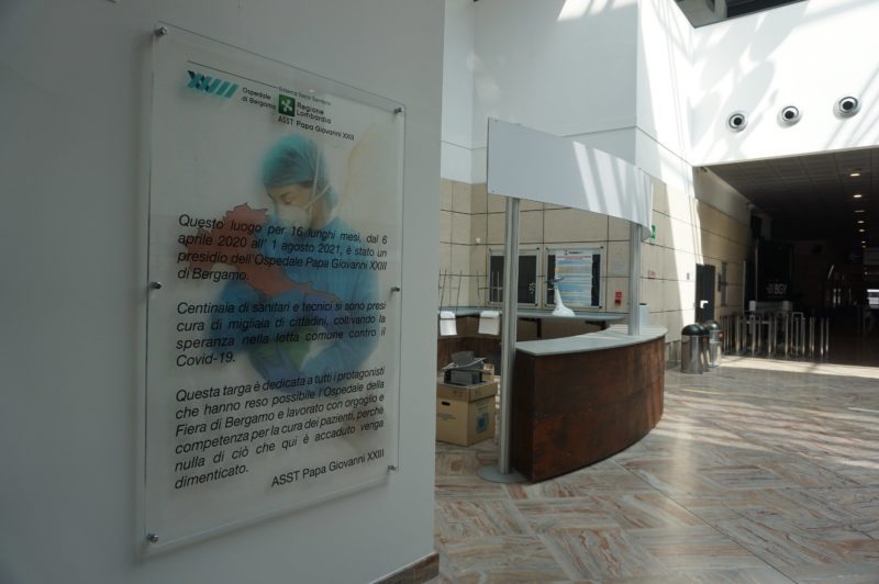 “Abbiamo voluto lasciare un segno tangibile di quello che questo luogo è stato e ha rappresentato nella lotta contro un nemico invisibile: un terzo presidio ospedaliero dell’ASST Papa Giovanni XXIII, perché nella fase più acuta della pandemia c’era la ricerca disperata di posti letto e i nostri due ospedali di San Giovanni Bianco e di Bergamo, nonostante l’enorme dimensioni di quest’ultimo, erano diventati praticamente ospedali covid. Erano i giorni in cui i pazienti gravi venivano inviati in Germania con aerei militari e alcuni trasferiti in altre regioni – ha commentato Maria Beatrice Stasi, direttore generale dell’ASST Papa Giovanni XXIII – Queste stesse mura, che oggi sostengono la nostra targa, per tanti mesi hanno ospitato operatori sanitari, tecnici e volontari, bergamaschi e provenienti da tante parti del mondo, arrivati a Bergamo per dare il proprio contributo prima nell’allestimento degli spazi, poi nella cura di centinaia di persone colpite dal virus e infine nella campagna vaccinale massiva”.