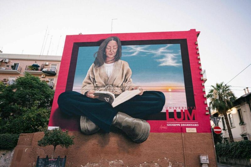 Il progetto innovativo, tra arte e marketing emozionale, prende forma da un’idea di Studiomarte , già nota per la famosa scritta artistica comparsa nel 2024 ‘La bellezza è ovunque’, che ha riscosso grande successo. Questo murale rappresenta il primo esempio in Puglia di opera d’arte pubblicitaria sostenuta interamente da un brand privato e nasce con l’obiettivo di promuovere l’università Lum ‘Giuseppe Degennaro’ attraverso un linguaggio artistico e contemporaneo, con molteplici finalità: contrastare la fuga di cervelli offrendo ai giovani nuovi punti di riferimento culturali, fare marketing in modo emozionale, accessibile e inclusivo, riqualificare lo spazio urbano e favorire un coinvolgimento sociale.