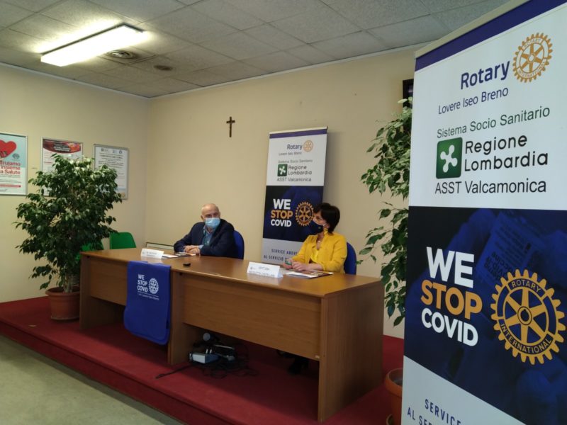 “Si tratta di un service che vede i nostri volontari rotariani e non a supporto dell’attività vaccinale promossa dall’ASST della Valcamonica – dichiara Nicoletta Castellani, Presidente del Rotary Club Lovere Iseo Breno- Circa 110 volontari si alterneranno dal lunedì al sabato nei centri predisposti di Boario ed Edolo per garantire una qualificata presenza sia per la gestione del flusso degli utenti all’interno ed esterno dell’hub vaccinale sia per la somministrazione del vaccino stesso con medici e infermieri abilitati ad eseguire le vaccinazioni”.